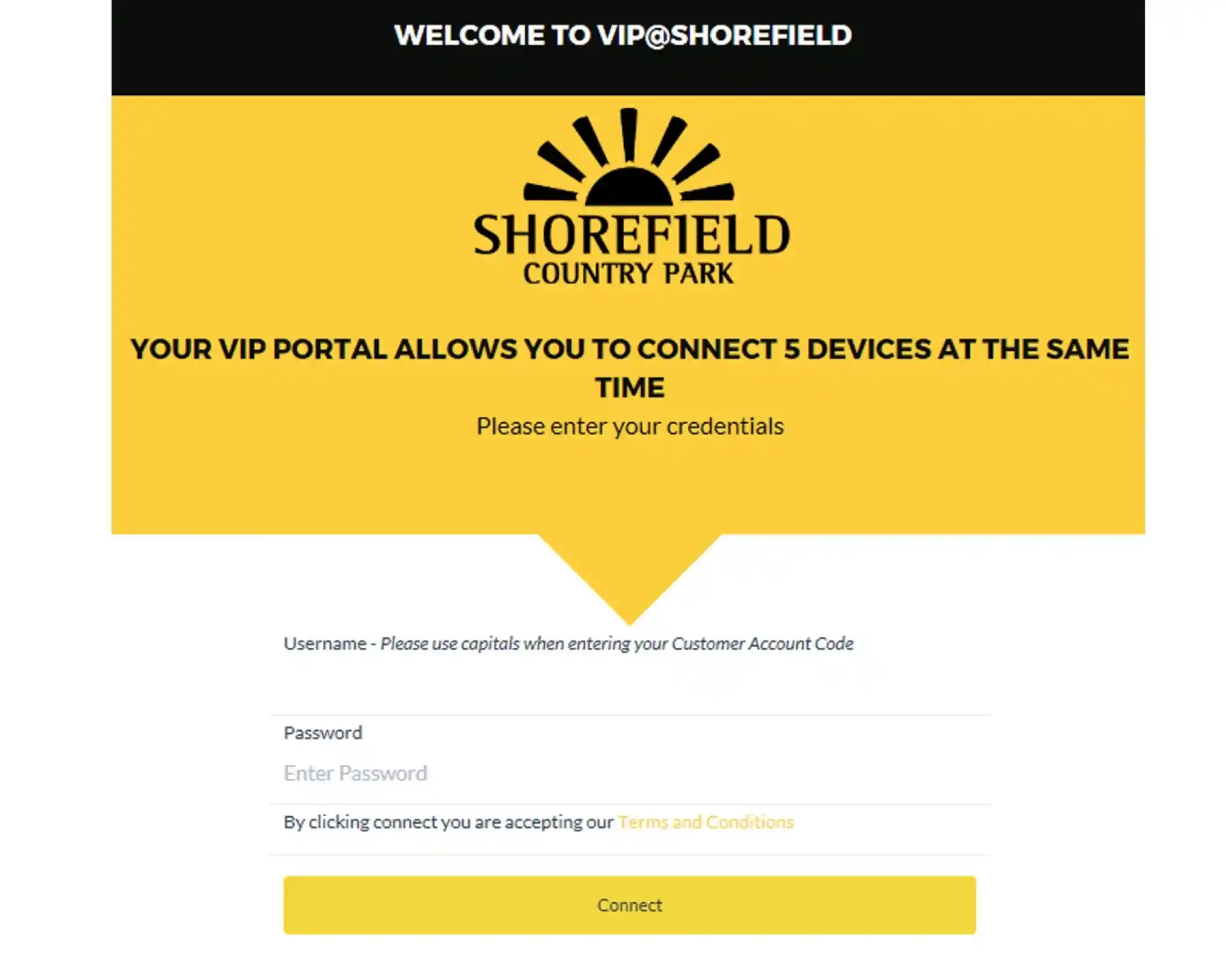 Your VIP account details have been provided to you, but if you would like us to resend them, please email wifi.support@shorefield.co.uk including your unit details and account number.